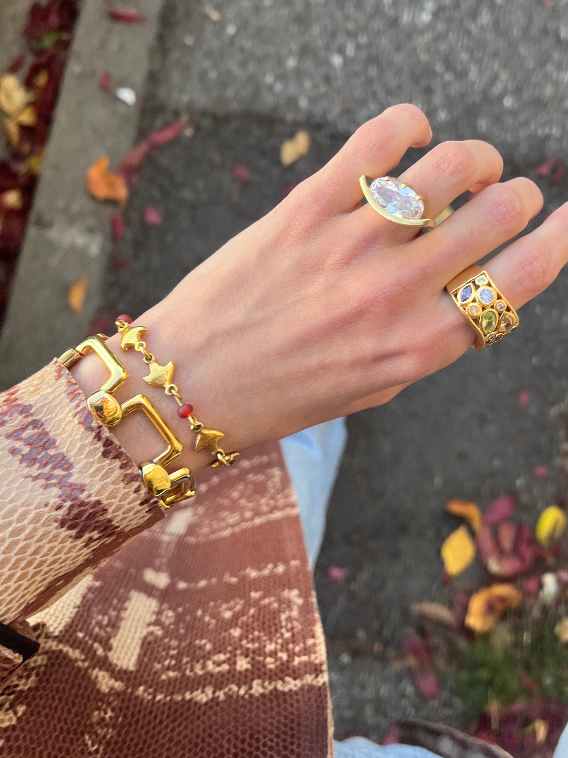 Bracelet dans les tons dorés et rouge, signé Oslo.