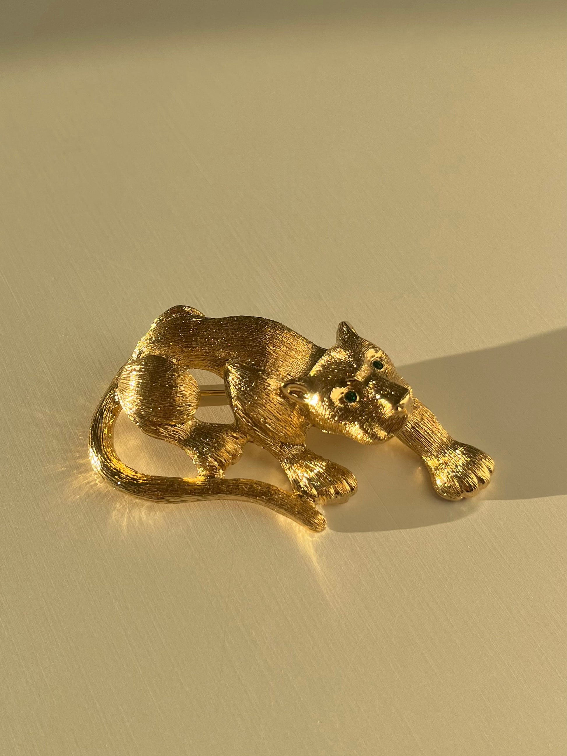 Matériau: Métal doré signé Pierre Lang, yeux en strass vert